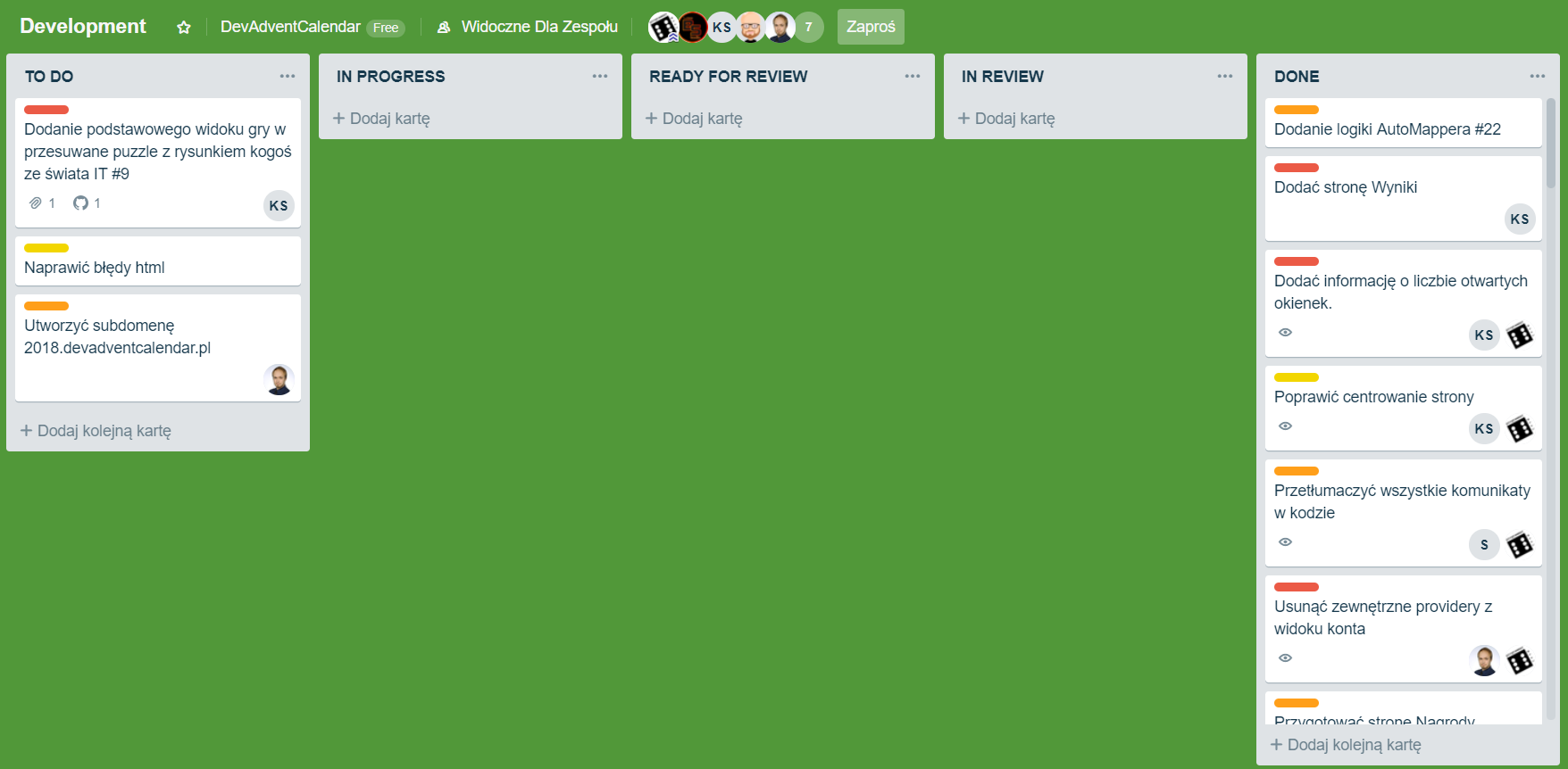 - READY FOR REVIEW – taski wydevelopowane, które trzeba sprawdzić