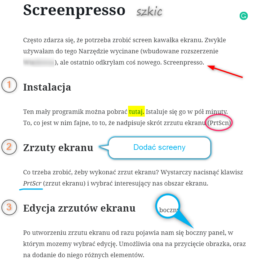 Ja używam Screenpresso tylko w ostateczności. Do robienia filmów, tak jak napisałaś, o wiele lepiej sprawdza się natywne narzędzie Windows, a zrzuty ekranu lepiej przechwytuje się i edytuje z wykorzystaniem darmowego narzędzia Greenshot (https://getgreenshot.org). Pozdrawiam.