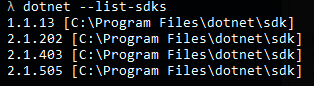 Natknęłam się podobny problem w issue na githubie. Należało sprawdzić, jakie wersje .NET Core mamy zainstalowane na komputerze, używając komendy
