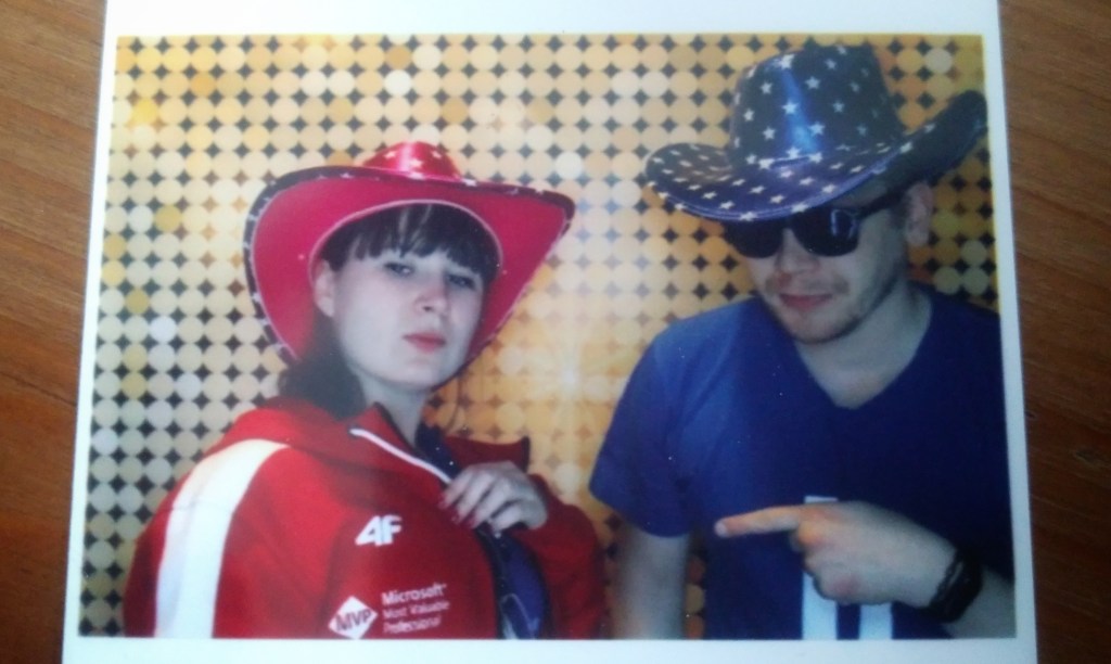 W ramach pracy w Objectivity wchodziłam w skład ekipy organizatorów. Tego dnia byłam więc w pracy, w oficjalnej koszulce konferencyjnej. Spotkałam wtedy kolegę z tytułem MVP (Pawła Klimczyka), który przyszedł jako uczestnik w bluzie z logo MVP. Jak widać, pożyczył mi ją na chwilę do zdjęcia.