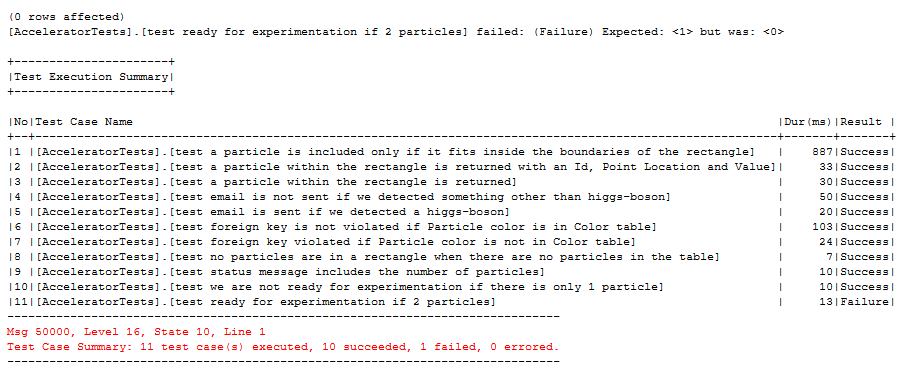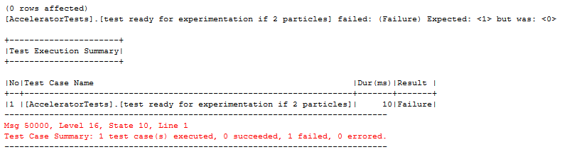 Test jest zwykłą procedurą złożoną z kilku kroków opisanych poniżej. Co ważne: żeby zostać rozpoznany jako klasa testowa, musi zaczynać się od słowa test np. [schema].[test status message includes the number of particles].