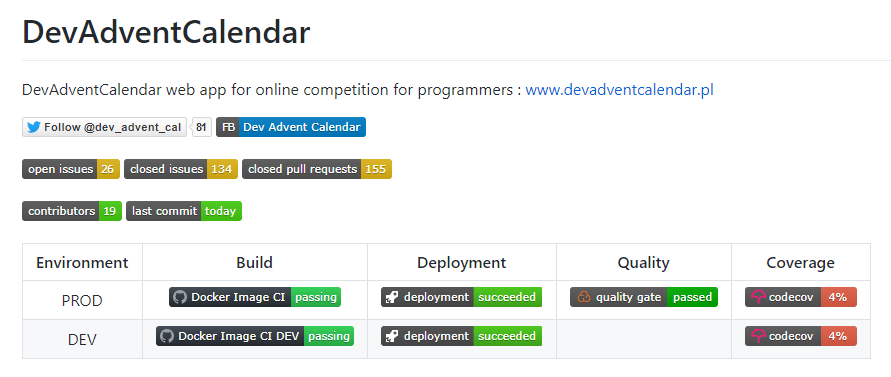 W ramach projektu open source DevAdventCalendar również dodaliśmy różne badge:
